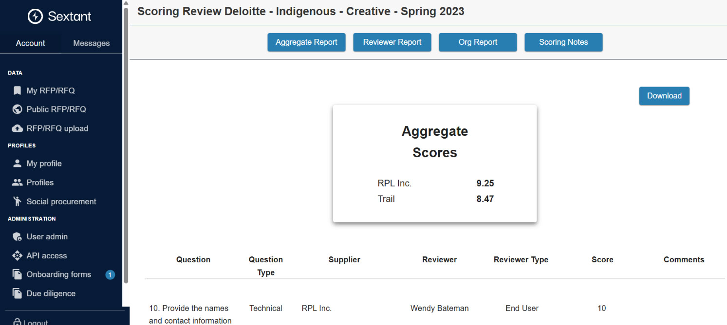 Scoring tools for rolling up a cardinal ranking of submissions across multiple stakeholders